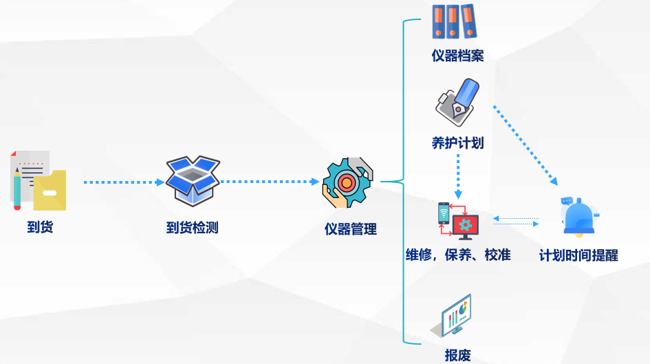 系統(tǒng)上線前,設備日常養(yǎng)護依賴紙質檔案、紙質維護單據(jù),存在儀器未按照計劃養(yǎng)護、儀器數(shù)據(jù)追溯困難等情況。系統(tǒng)提供了儀器全生命周期的解決方案,從儀器到貨、到貨檢測,再到儀器檔案、養(yǎng)護、報廢全過程進行關聯(lián),使得儀器管理全生命周期可追溯,管理者可以隨時掌握儀器養(yǎng)護情況;計劃時間提醒功能可以及時提醒工作人員對儀器進行養(yǎng)護。
