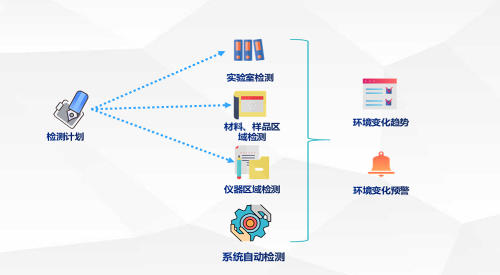 系統(tǒng)上線前,檢測環(huán)境的信息記錄到紙質單據(jù)上,管理者無法及時掌握實驗環(huán)境檢測情況,無法針對環(huán)境工作有針對的調整。系統(tǒng)上線后,管理者可以制定計劃,檢測人員根據(jù)計劃定期檢測,重要的實驗室使用系統(tǒng)采集實時的環(huán)境數(shù)據(jù),系統(tǒng)可以形成環(huán)境變化趨勢和環(huán)境變化預警提供管理者參考,提高環(huán)境管理水平。