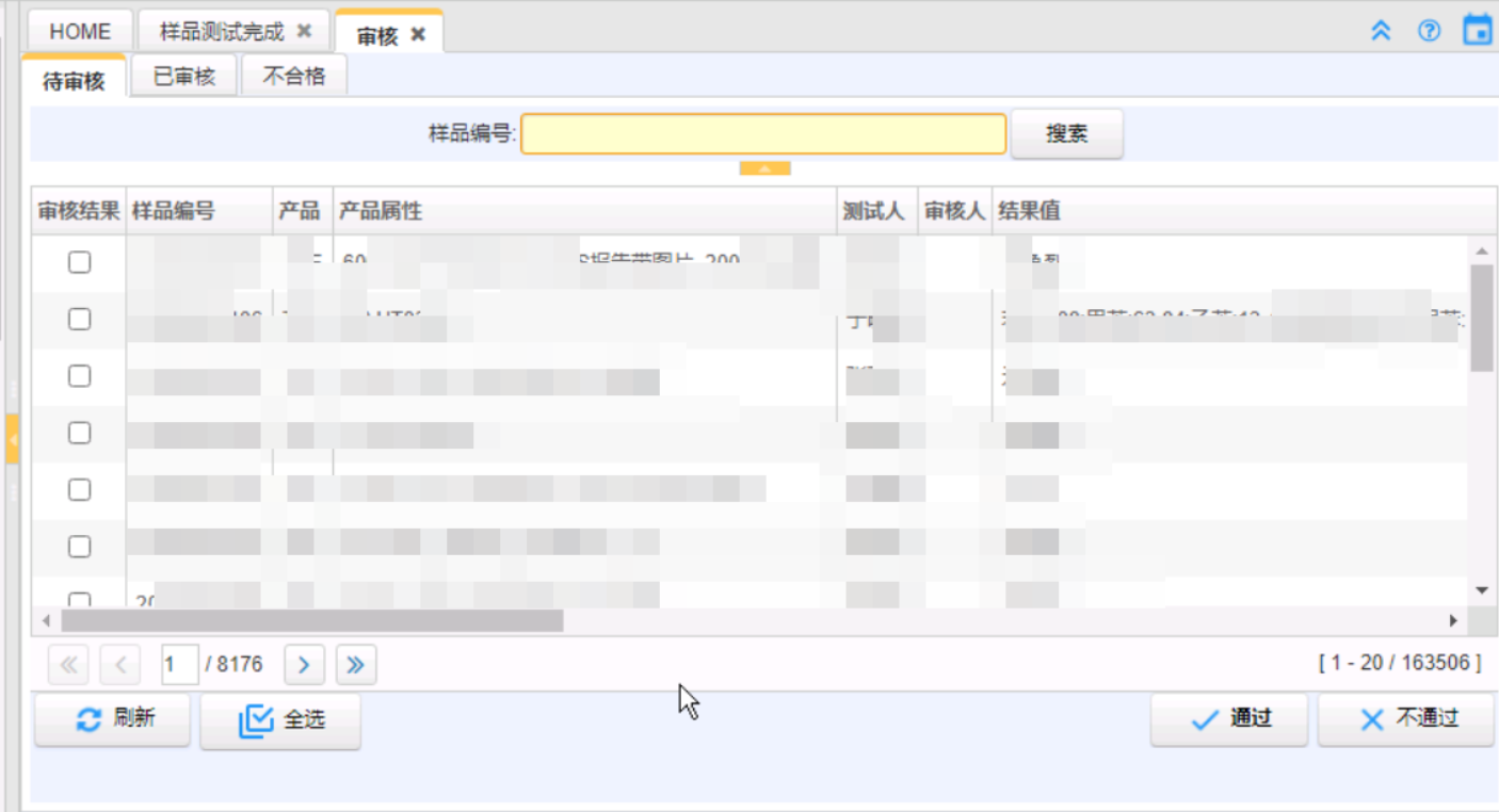 系統(tǒng)上線前,審核人根據(jù)樣品逐一找出檢驗單進行審核,耗費時間較多;系統(tǒng)上線后,審核人委托單號、樣品信息篩選快速找到檢驗項目的結果進行審核,不合格的檢驗項目可以退回,檢驗完成后再次審核,提高工作效率。