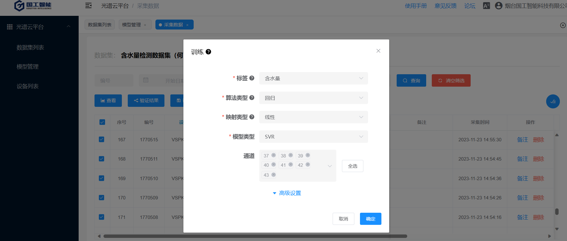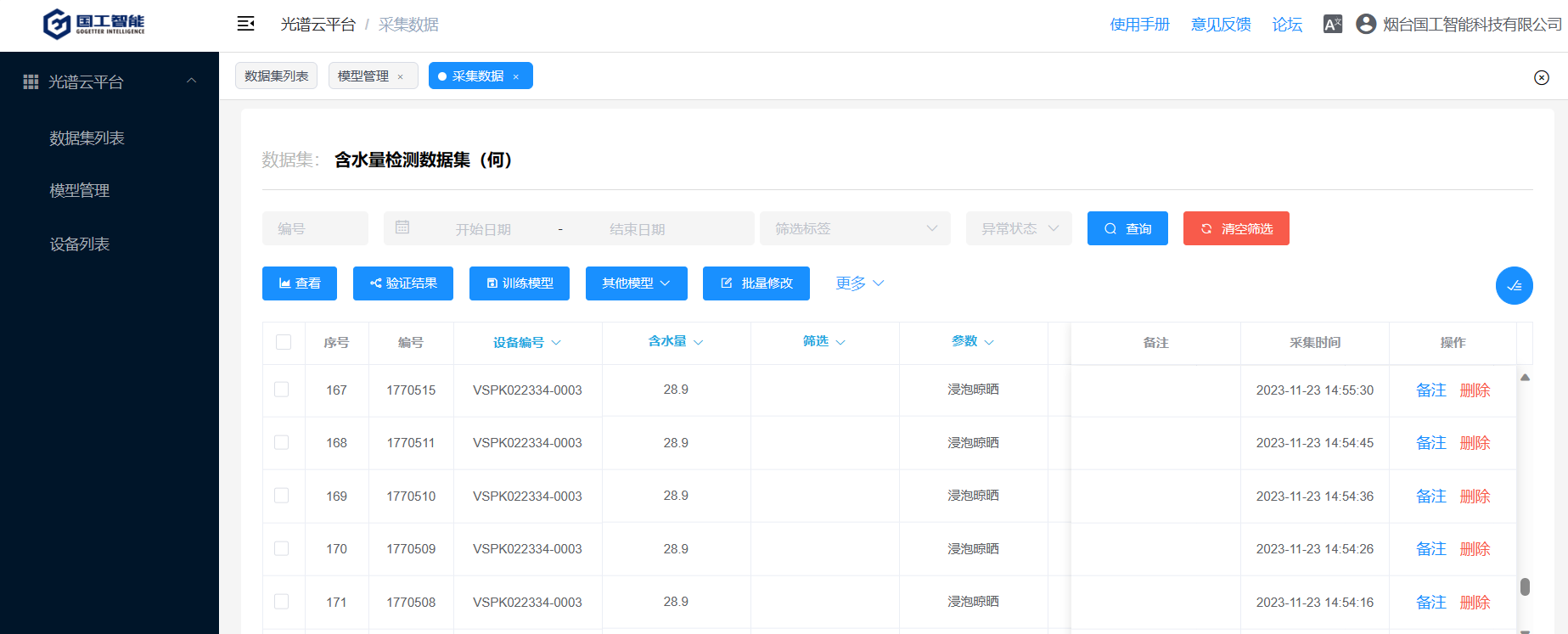 以光譜儀采集數(shù)據(jù)為前提,數(shù)據(jù)大腦平臺(tái)為依托,在線智能光譜檢測(cè)系統(tǒng)通過(guò)當(dāng)前主流AI人工智能技術(shù)在線將采集到的大量數(shù)據(jù)機(jī)器學(xué)習(xí)、訓(xùn)練模型,模型對(duì)生產(chǎn)材料進(jìn)行在線檢測(cè),檢測(cè)結(jié)果可以輔助生產(chǎn)過(guò)程的決策,在品質(zhì)監(jiān)控以及原料投放方面起到了重要作用。