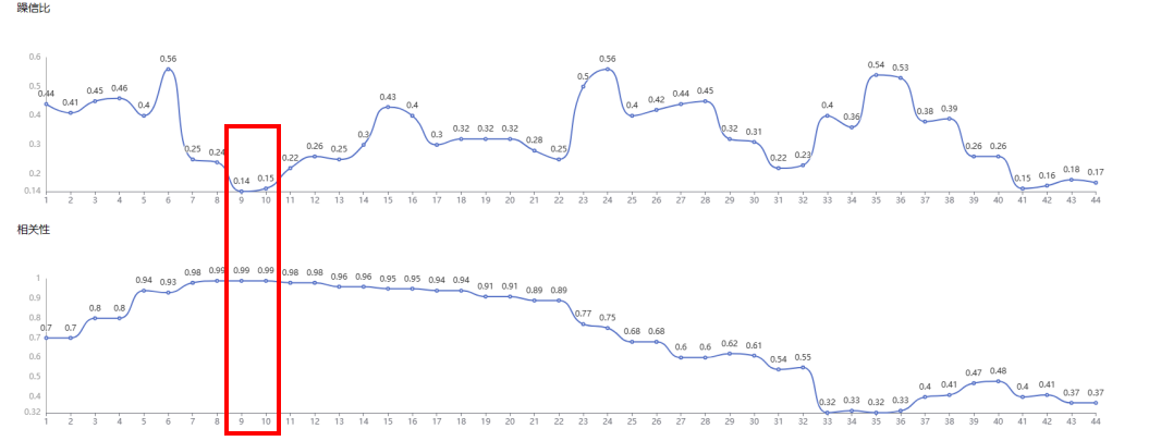 圖4.不同波動下載冷劑圖譜的躁信比與相關性
