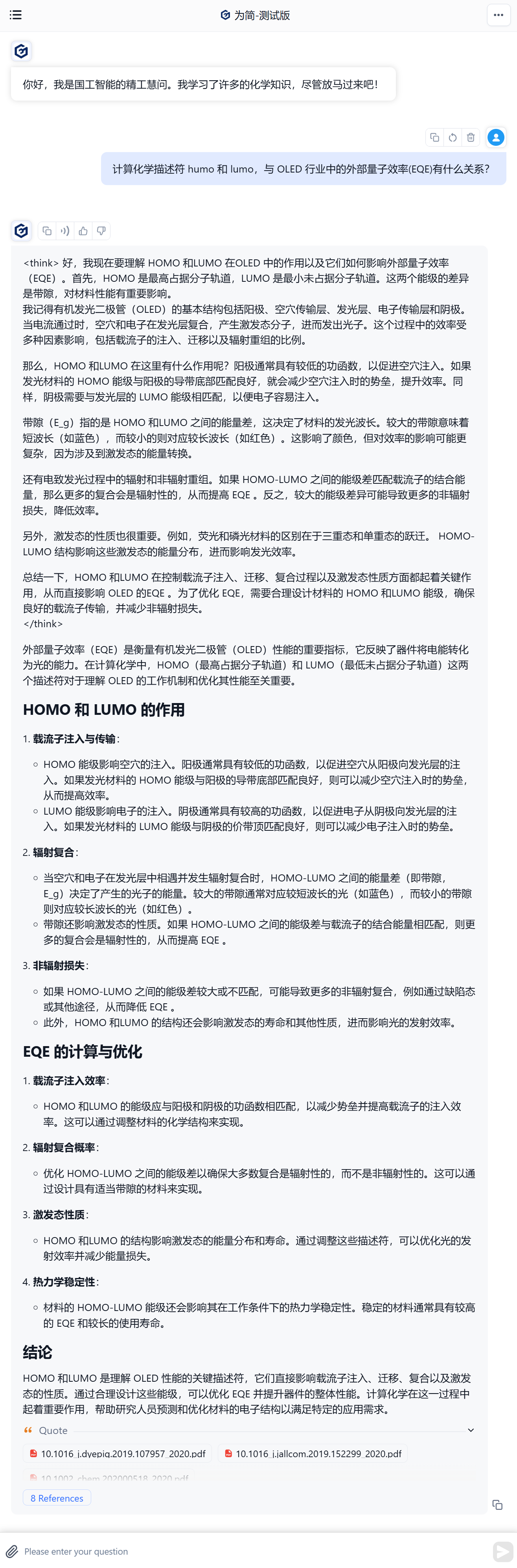 化工知識強化:「國工化工大模型」已完成百萬篇專業(yè)化學文獻的知識庫構建,并結合行業(yè)最領先的數據集完成訓練,天然具備化工行業(yè)知識屬性,在行業(yè)術語、專業(yè)概念、學科理論等方面的理解和分析能力顯著提升,回答時生成的文本具備更強邏輯性、準確性,更符合行業(yè)規(guī)范。