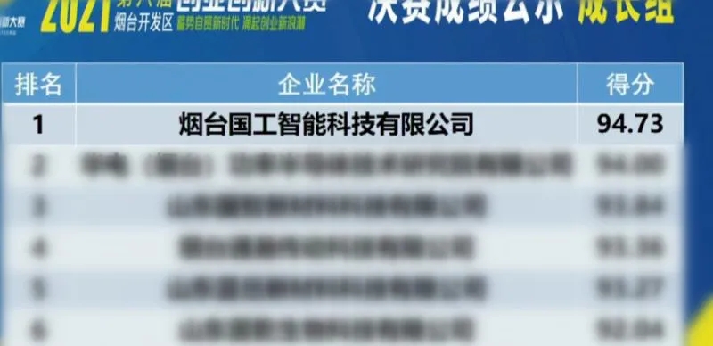 國(guó)工智能喜獲煙臺(tái)開(kāi)發(fā)區(qū)第六屆(2021年)創(chuàng)業(yè)創(chuàng)新大賽一等獎(jiǎng)