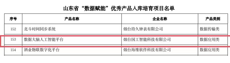 喜訊!國工智能入選山東省“數(shù)據(jù)賦能”優(yōu)秀產(chǎn)品入庫培育項目名單